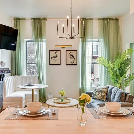 Gästen stehen ein Kühlschrank, ein Herd und Küchenutensilien in einer Küche zur Verfügung. Die Downtown Albany Vacation Rental - Chic And Walkable! ist nur ein paar Schritte entfernt von der Bushaltestelle Broadway & Clinton Ave.